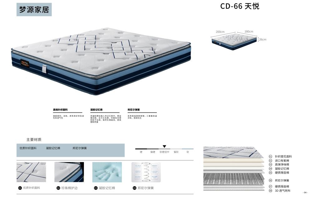 成都夢源家居集團有限公司是一家集床墊生產、銷售、科研為一體的大型綜合性企業,主營床墊,家居等.公司擁有專業的床墊研發小組,不斷開發床墊新品近百種。夢源家居獨特的彈力網內部結構,時尚尊貴的外觀設計,環保健康的新材料運用,保健功能的充分挖潛,打破了傳統席夢思的產品定位,開發出適合不同消費需求的家居,賓館類床墊產品。我們歡迎您的咨詢 !